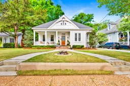 This cream-colored historic home brings together timeless charm and thoughtful updates in a way that just feels easy. From the curb appeal—manicured landscaping, new concrete driveway, and a front porch swing that actually gets used—to the natural light pouring through every room, it lives as good as it looks.